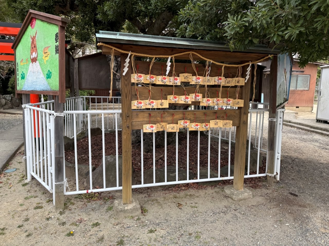 既存の絵馬掛けを移設し、柵内の石を一部撤去。